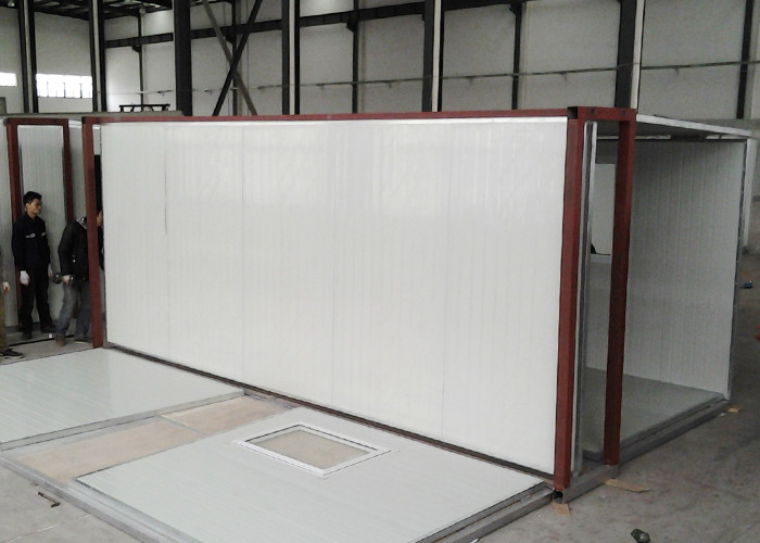 لوحات الحائط مصنوعة من 50 ملم مع لوحة ساندويتش من رغوة EPS بسعة 10 كجم. يتم تثبيت جميع اللوحات في المصنع ويتم توصيلها مع لوحة السقف. سمك الفولاذ لللوحة هو 0.35ملم خارج و 0.35 مليمتر داخل