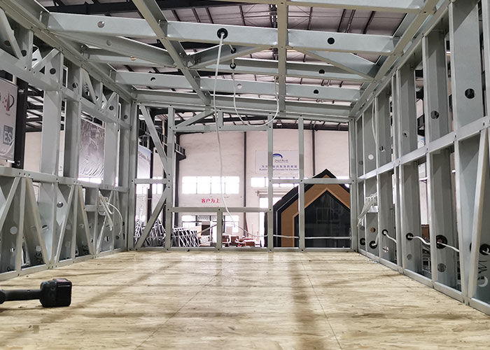 10) التعبئة والتسليم: حاوية 140 مترًا مربعًا / 40 قدمًا مكعبًا للهيكل فقط وحاوية 90 مترًا مربعًا / 40 قدمًا مكعبًا للهيكل مع مواد الديكور.