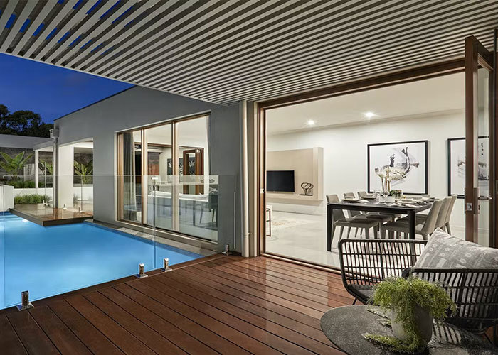 يفتح مركز المنزل إلى مطبخ مفتوح متصل بمكان الطعام. تم تصميم هذه المساحة للطبخ اليومي والوجبات المشتركة،مع تدفق سهل يناسب كل من الروتين اليومي والتجمعات مع الأصدقاء أو العائلةمن منطقة الطعام، الأبواب المنزلقة الألومنيوم الكبيرة تؤدي مباشرة إلى غرفة في الهواء الطلق، وتوسيع مساحة المعيشة في الهواء الطلق وخلق انتقال سلس بين الحياة الداخلية والخارجية.