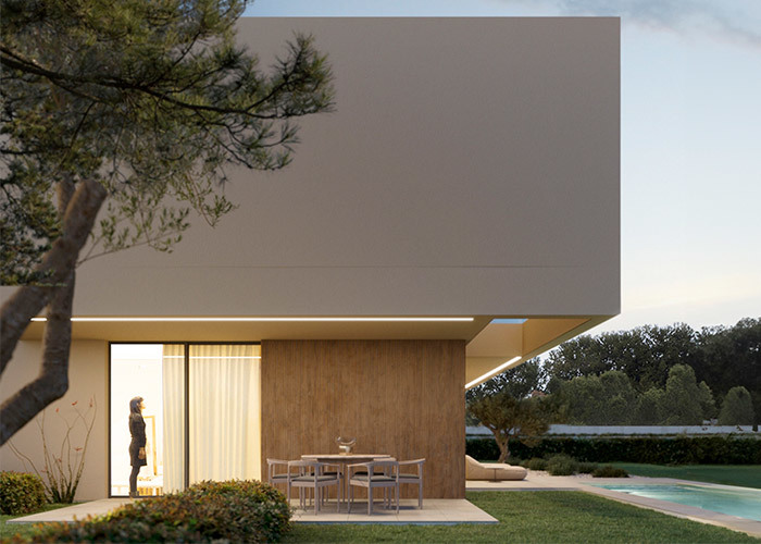 يحيط المنزل بفناء خاص محمي، مما يخلق امتدادًا طبيعيًا لمساحة المعيشة حيث يمكنك الاستمتاع بقهوة الصباح أو التجمعات المسائية تحت السماء المفتوحة.